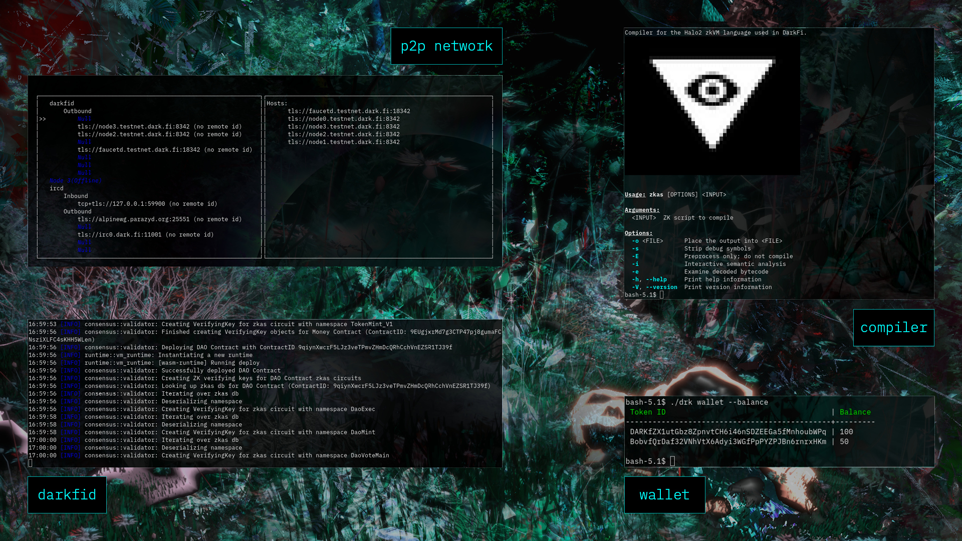 DarkFi's smart contract architecture processes anonymous programs through a simple assembly language and executes them on chain.